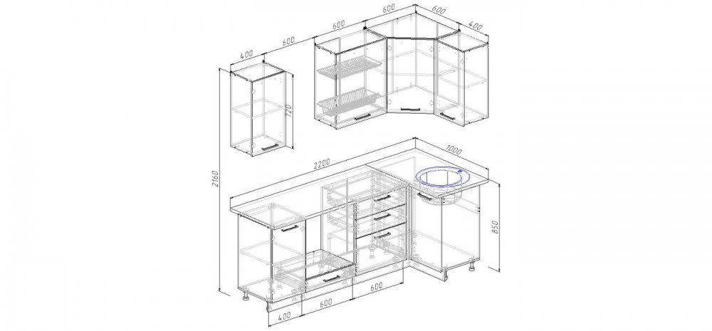 Размеры (Ш*В*Г)(мм): 2200*0*1000