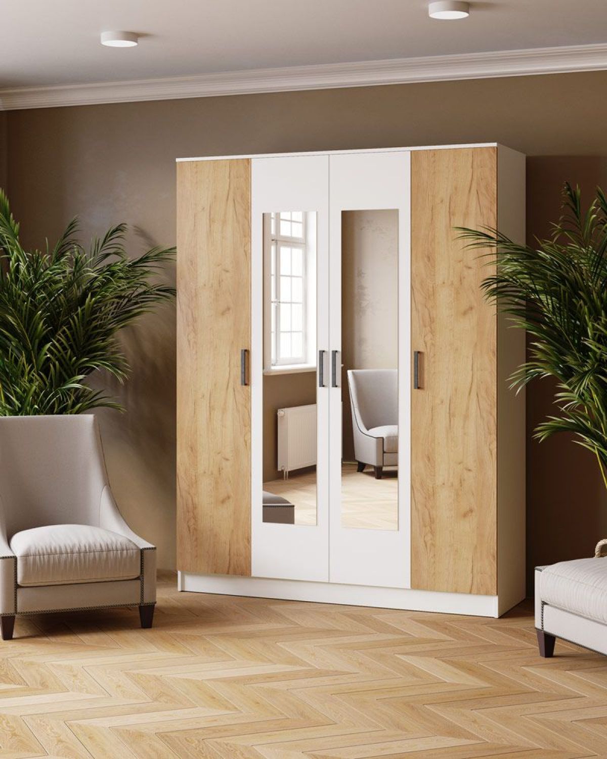 ЛАРС Шкаф комбинированный 1,6 с зеркалом Белый/Дуб крафт золотой