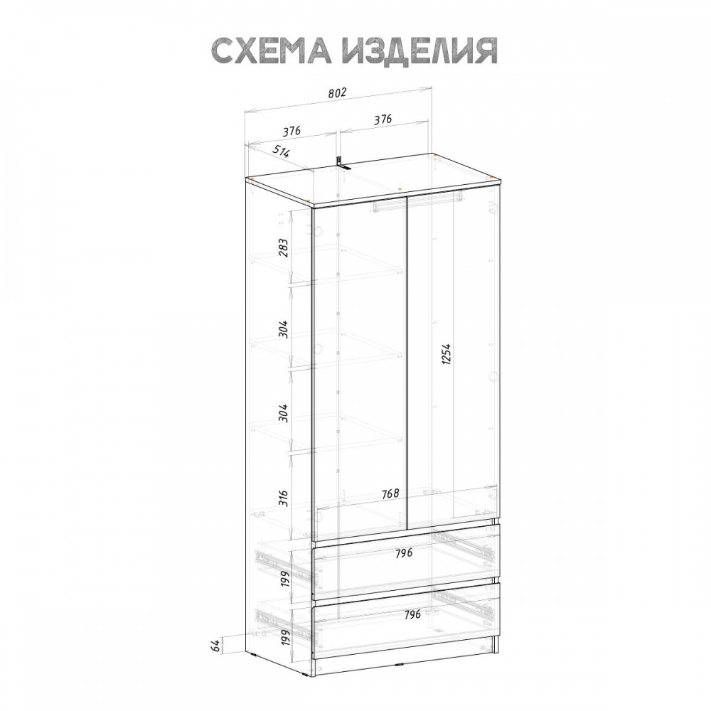 Шкаф двухстворчатый «Симпл» (ШК-03) — минималистичный двухстворчатый шкаф станет хорошим дополнением как к классическому, так и к современному интерьеру. В двух выдвижных ящиках удобно хранить обувь или белье. За распашными дверцами размещена штанга для хранения верхней одежды.