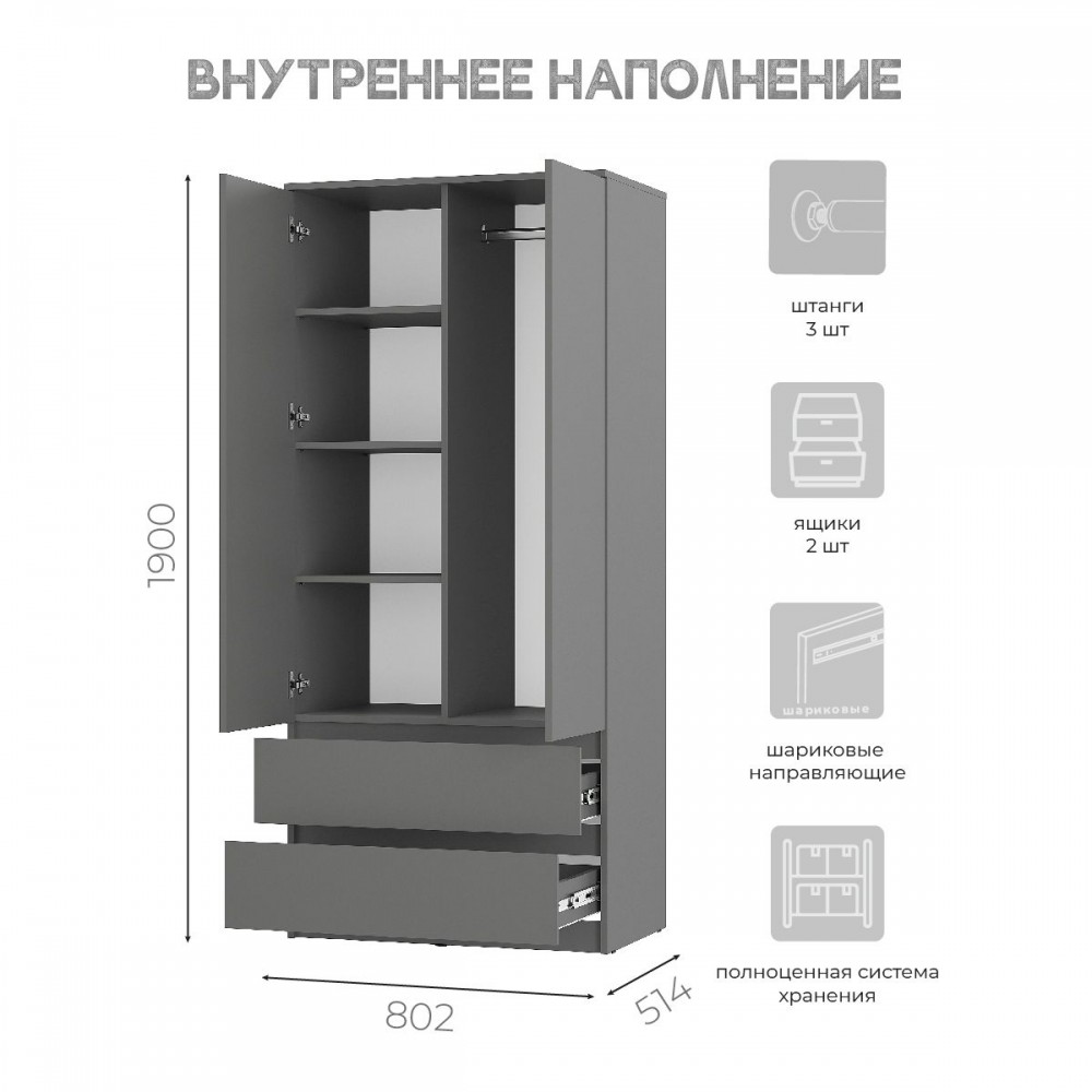 Шкаф 2-х створчатый Симпл ШК-03 (графит)